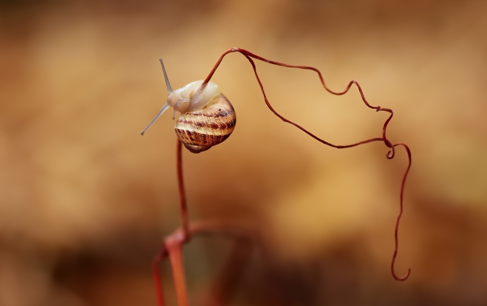 I always have a very clear idea of the image that I want to achieve. In this case the idea was to play with the shape of the snail and the curves of the branch. I tried to create a “funny“ picture with beautiful tones as well! When I showed this picture to my surroundings they immediately recognized my style. I love the macro addressed with simple things but the composition of the photo is of paramount importance.
