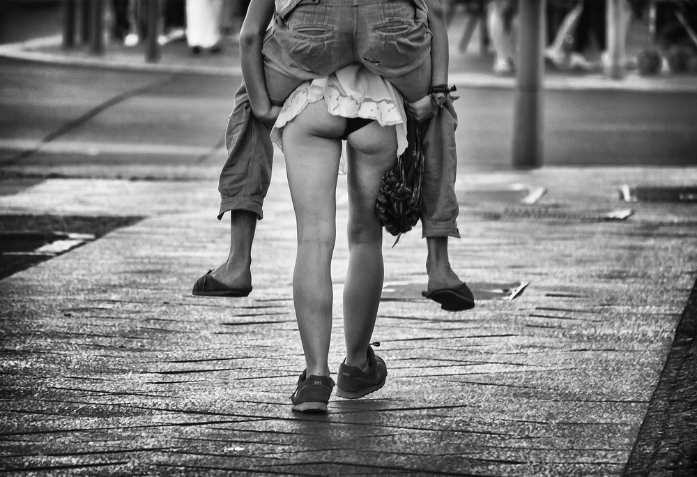 It is an example of the concept of “luck” by Elliot Erwitt, a street scene, which we don’t find everyday. But I was there and had my camera… I walked 50 meters following the funny young, taking several photos. Ten minutes later I went to an event (a conference) and the photographer had not come. I was asked to take some photos there… Many coincidences! With this photo I won once a photo contest in a Facebook site called “World Street Photography”.