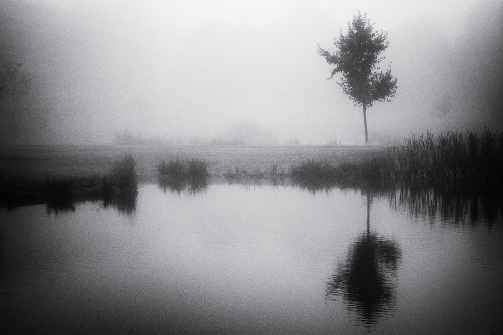 I love to walk in the polderland when it is foggy, my favourite weather.  The world looks so different in the mist when you are alone with the trees and birds.  I enjoy so much the invisible mystery, the silence and peace it creates.  It make me feel so comfortable.
